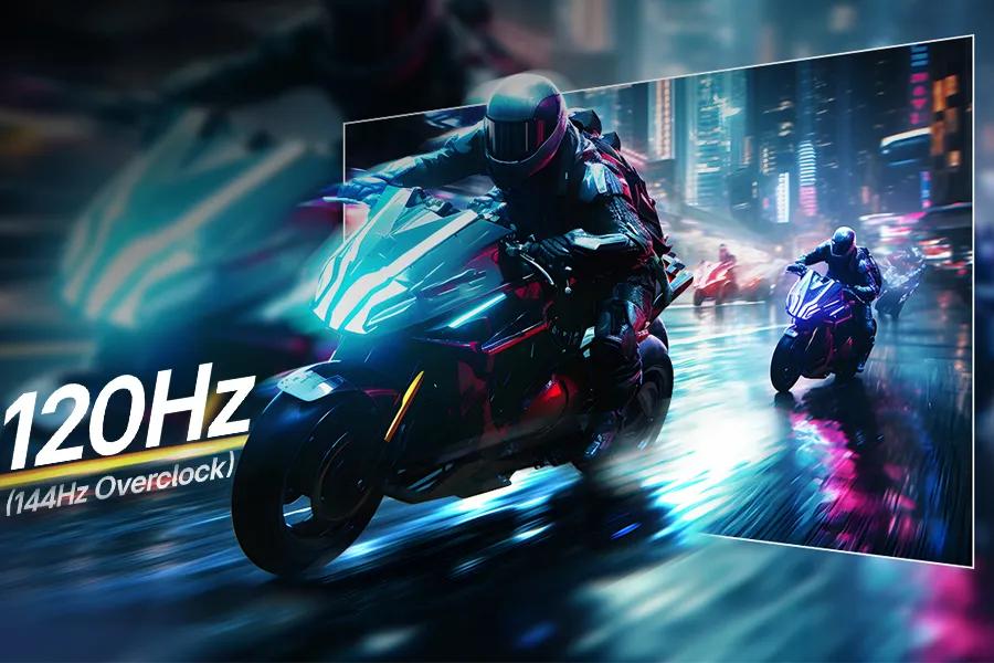 Enjoy fluid, crystal-clear gameplay with a 120Hz refresh rate, boosted to 144Hz when overclocked. Minimized motion blur keeps every frame sharp, so you can stay locked in on the action.