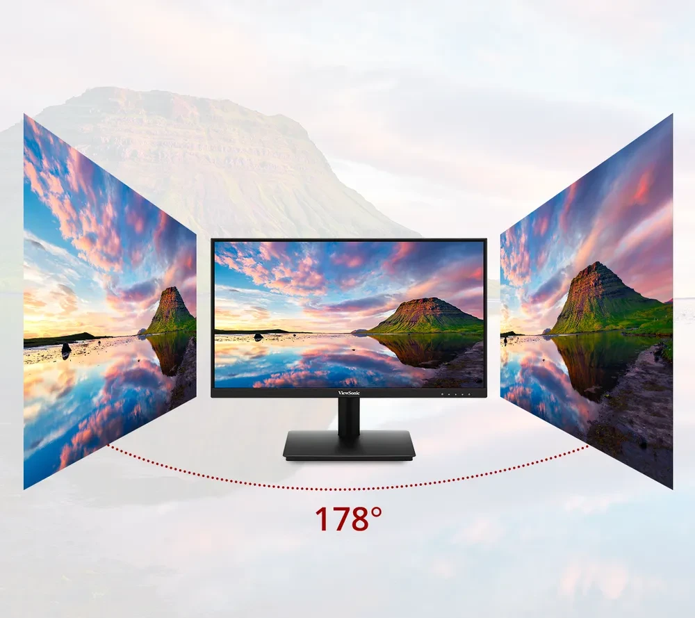 The ViewSonic® VA240A-H monitor gives you flexible connectivity, clear visuals, and wide viewing angles that fit easily into your everyday setup. This 24-inch monitor features a three-sided frameless design that keeps your space looking clean and modern. A SuperClear® IPS panel delivers bright colors and strong contrast for a crisp picture from almost any angle. Plug in your PC, laptop, or gaming console with the included HDMI cable. It also supports variable refresh rate technology for smoother gaming. Enjoy solid performance at a great price with the VA240A-H monitor.