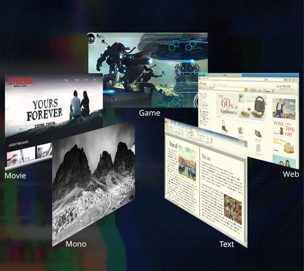 ViewSonic’s unique ViewMode™ feature offers “Game,” “Movie,” “Web,” “Text,” and “Mono” presets. These presets enhance gamma curve, color temperature, contrast and brightness to deliver an optimized viewing experience for different screen applications.