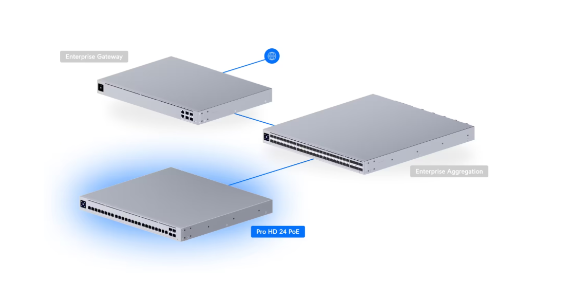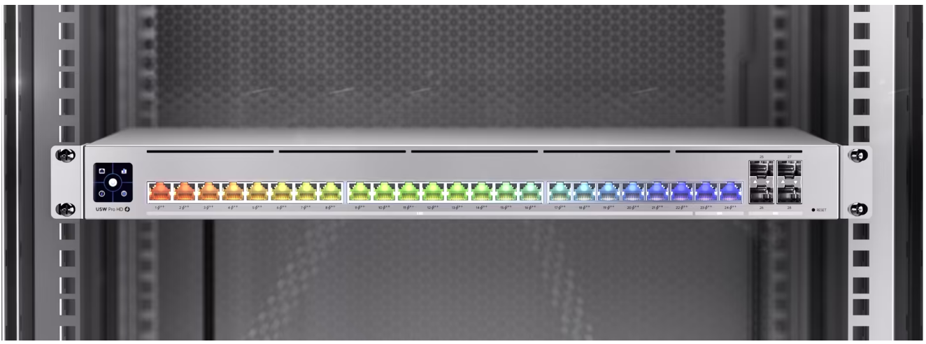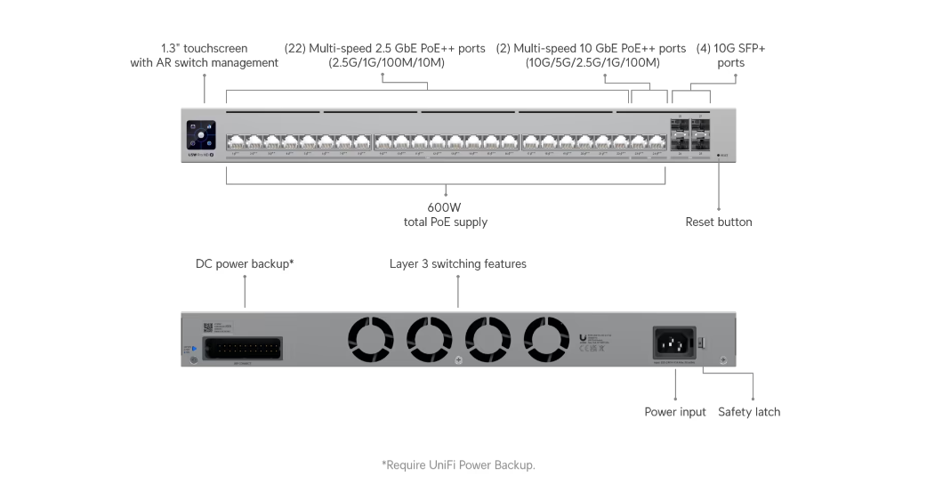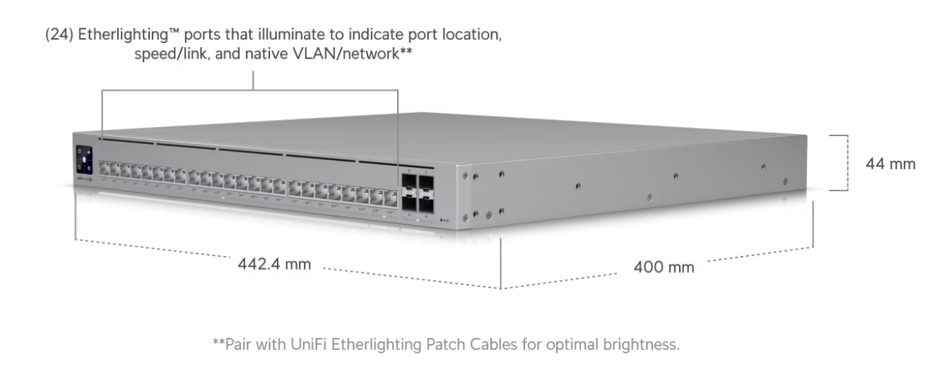 Professional-grade, Layer 3 Etherlighting™ switch with (2) 10 GbE PoE++, (22) 2.5 GbE PoE++, and (4) 10G SFP+ ports.