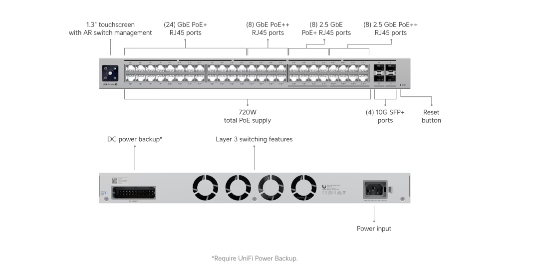 A 48-port, Layer 3 Etherlighting™ switch with 2.5 GbE and PoE++ output.