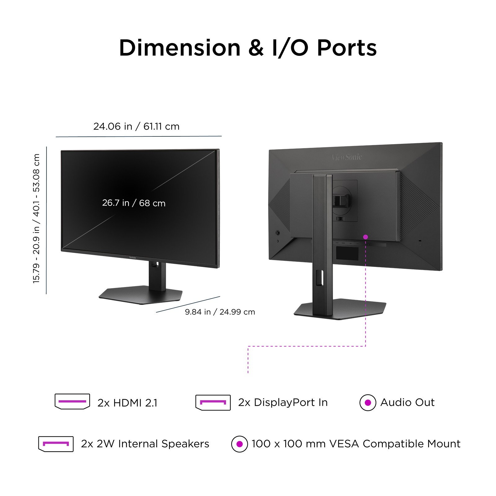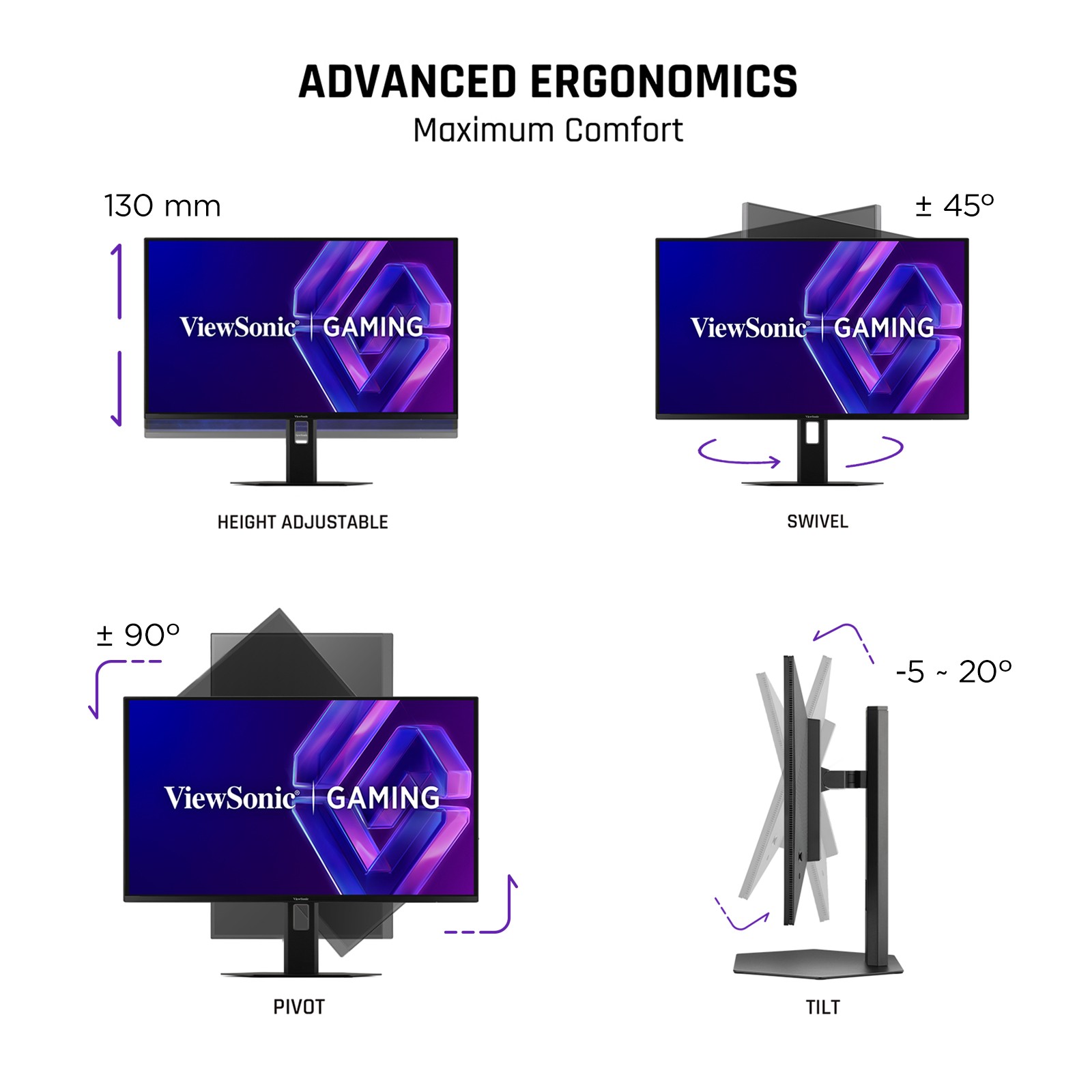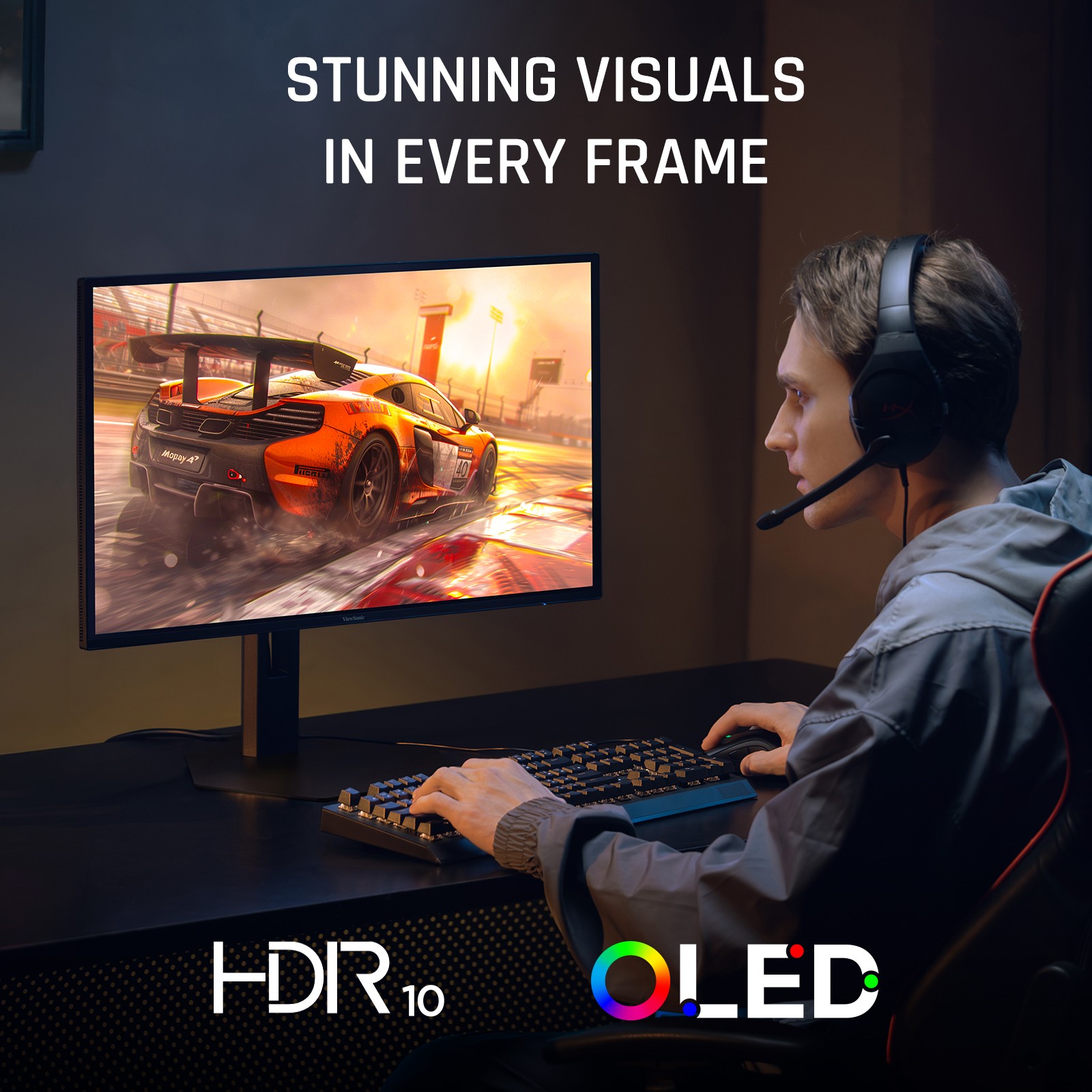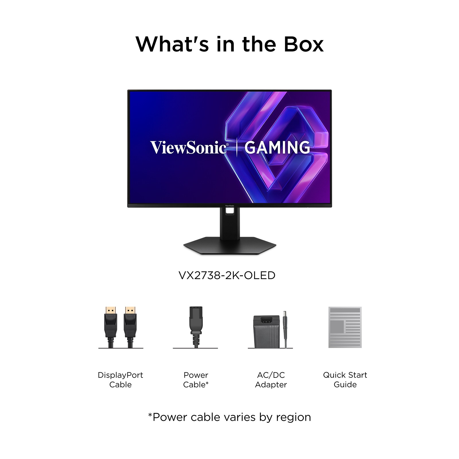 Ascend to the apex of the gaming world with the 27” VX2738-2K-OLED monitor. Featuring a 240Hz refresh rate with a 0.03ms GtG response time, this ultra-responsive gaming monitor delivers incredibly smooth visuals while giving gamers the edge they need to win the day. Quantum Dot-OLED technology brings games to life with deep blacks, vibrant color, and striking contrast, making it easier to spot details in dark scenes and stay locked into the action. NVIDIA G-SYNC Compatible and AMD FreeSync Premium support help eliminate screen tearing and stutter for fluid, distraction-free gameplay. Designed for long sessions, the fully adjustable ergonomic stand lets you dial in the perfect viewing position. With HDMI 2.1 and DisplayPort connectivity, this 27" monitor is ready for high performance PCs, consoles, and everything in between.