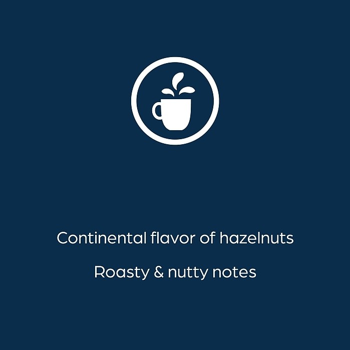 Enjoy a luxurious blend of medium roasted beans and the continental flavor of hazelnuts.