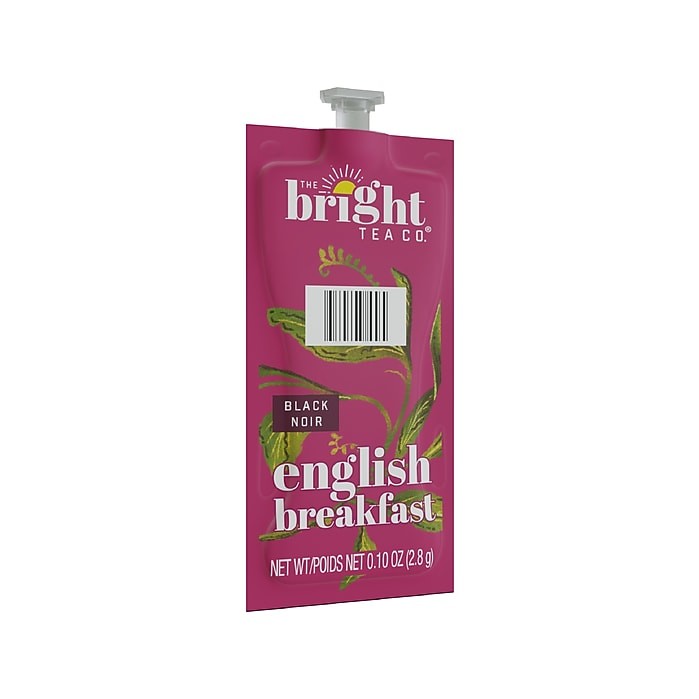 Enjoy the fresh, smooth flavor of the Bright Tea English Breakfast freshpack. This robust, full-bodied black tea features notes of caramelized sugar and malt, with balanced astringency. The 40-count box is great for small offices, and the real leaf teas ensure a consistent flavor.