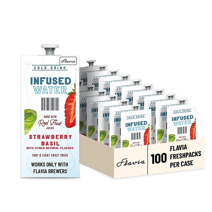 This Lavazza Strawberry Basil infused water features berry tartness with subtle basil notes. Sweet and hydrating, with a refreshing fruity flavor made with real fruit juice. Satisfy sweet cravings with tart strawberry and a hint of basil, all with 10 calories and no artificial sweeteners.