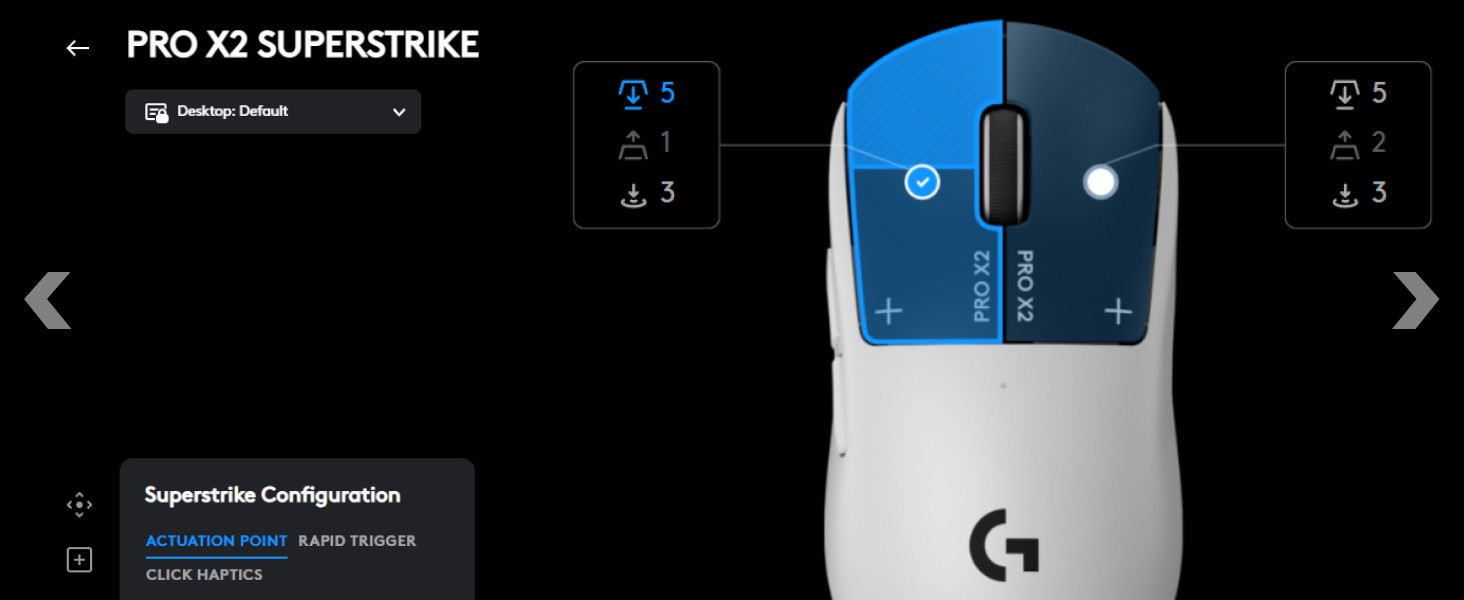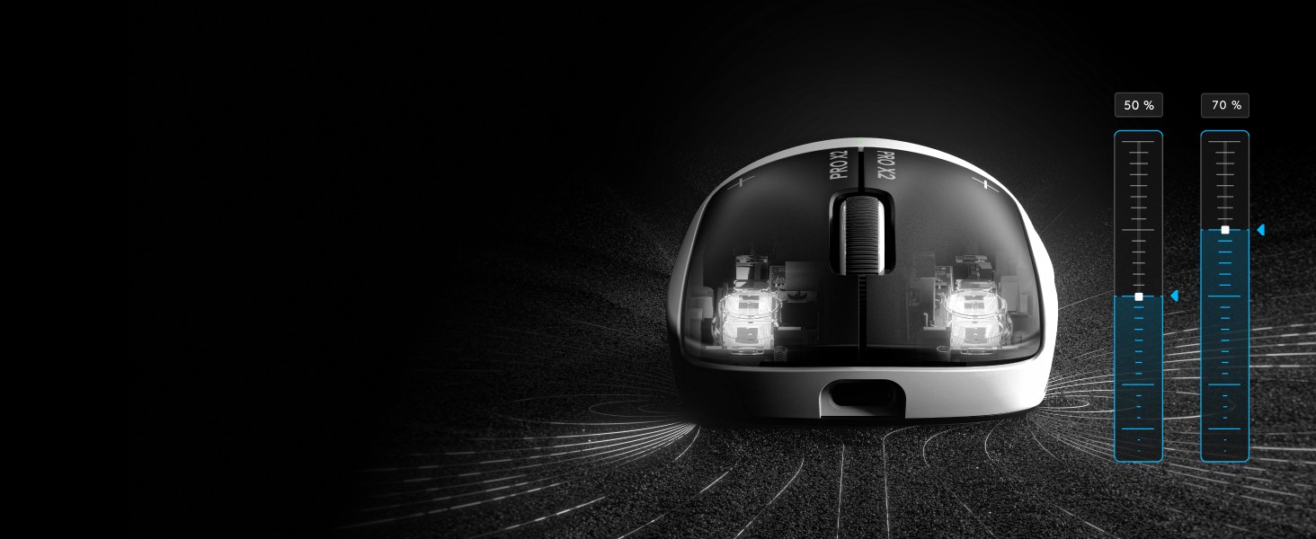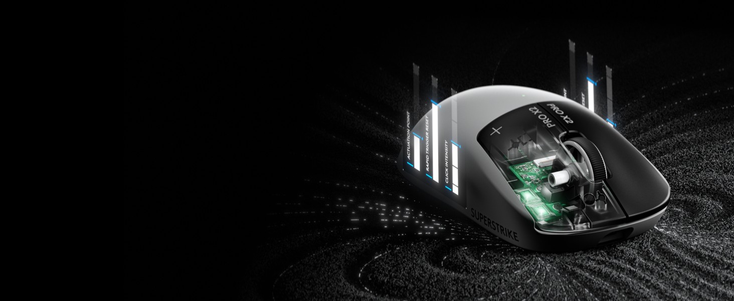 PRO X2 SUPERSTRIKE replaces microswitches with new tech for ultra-low click latency. Customize each main key’s actuation point, rapid trigger setting & click haptics. Your competition won’t know what hit them.