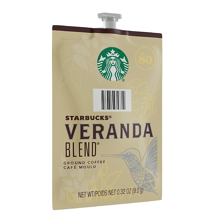 Keep plenty of hot beverages on hand with this carton of 80 Starbucks Veranda Blend single serve Freshpacks. Starbucks Veranda Blend Coffee Flavia Freshpacks offer a delicate, lightly roasted flavor with notes of toasted nuts and soft cocoa. Designed for Flavia single-serve brewers, these 76 Freshpacks ensure a consistently smooth and mellow cup, perfect for offices, breakrooms, and home brewing
