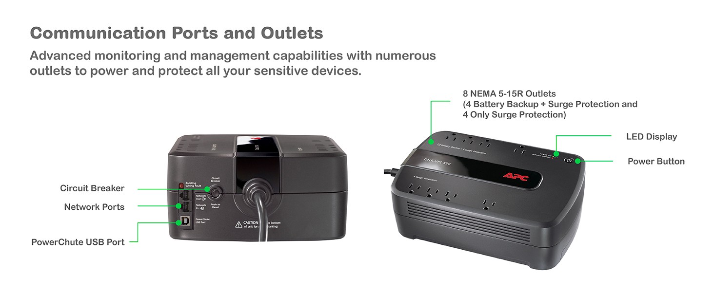 | Is this UPS battery user-replaceable? | Yes, the UPS is compatible with a dedicated user-replaceable battery, and the APC replacement battery cartridge helps restore UPS performance to the original specifications. |
