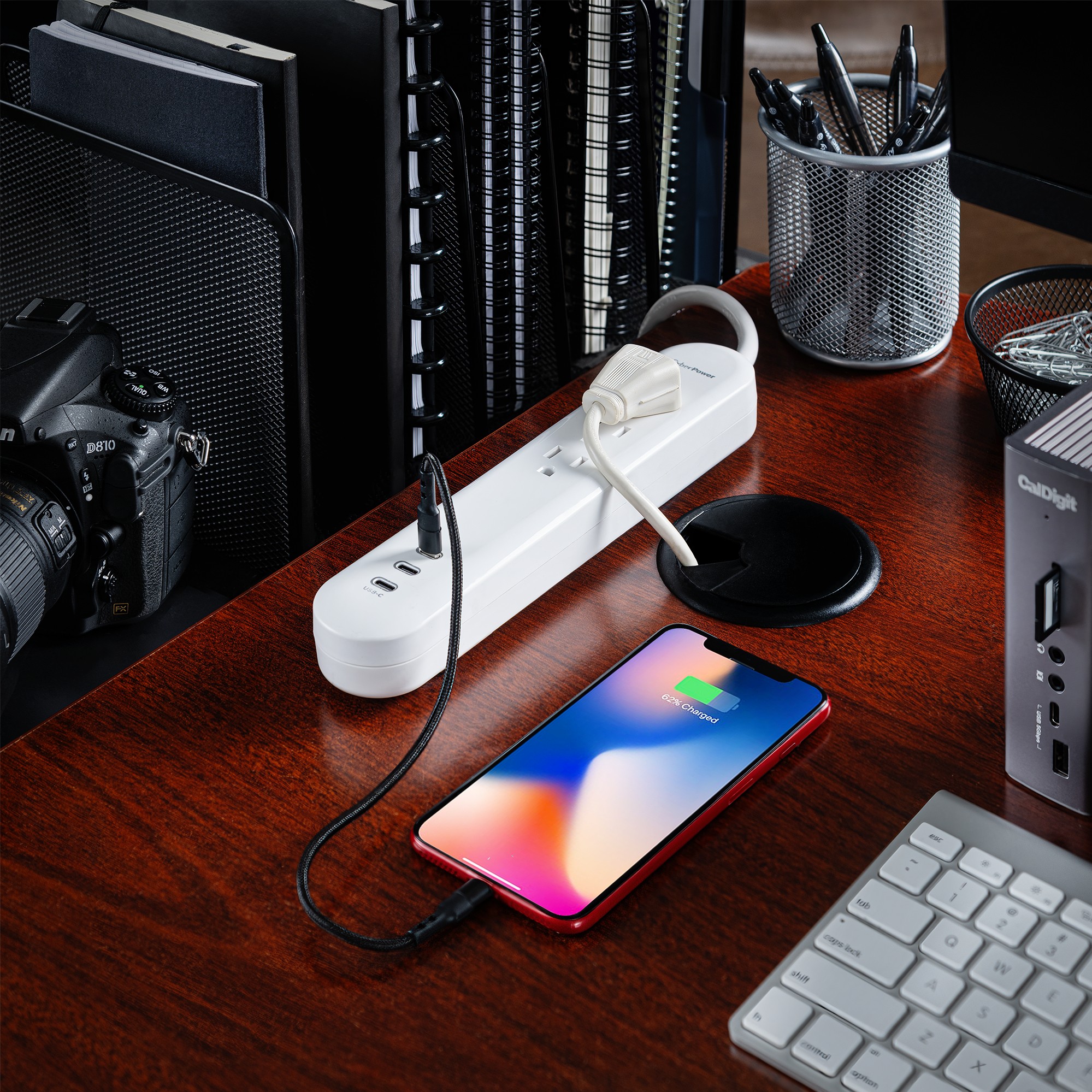This unit will take up one outlet, while providing 3 surge protected outlets and 3 USB-C ports when plugged in.