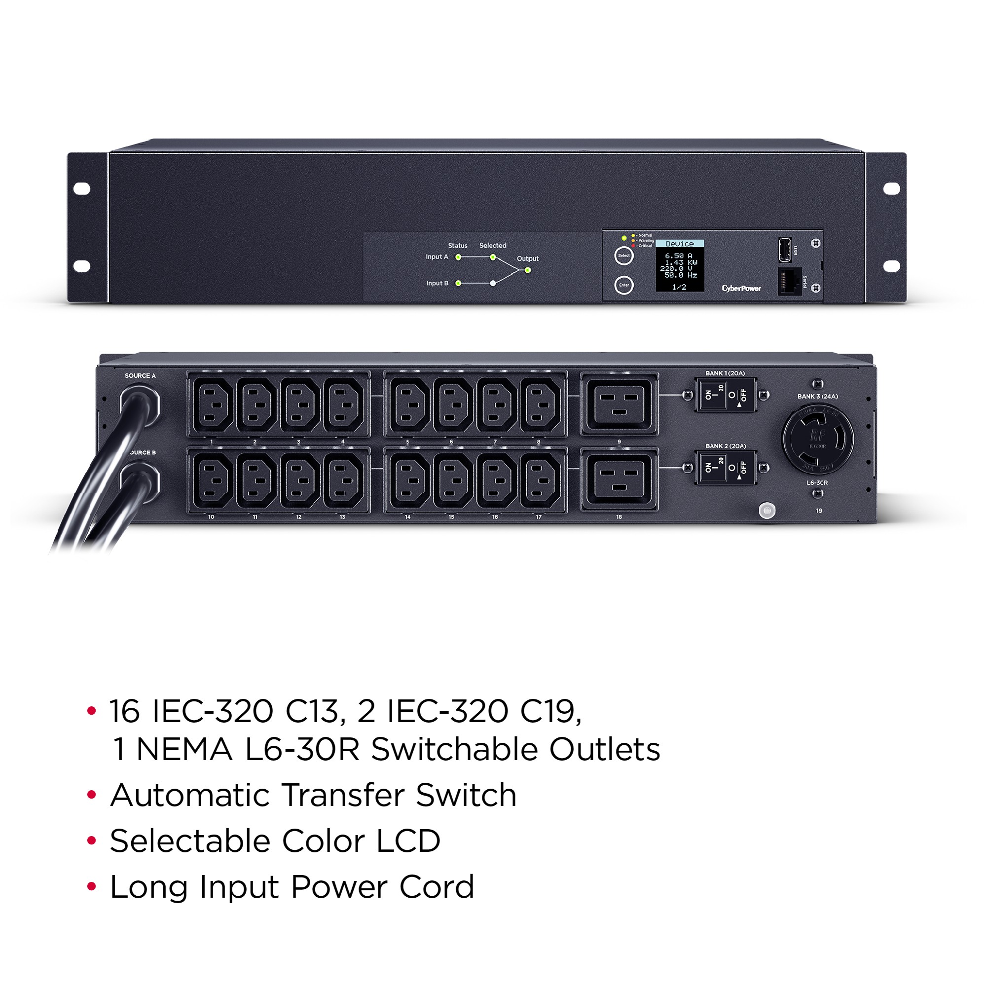 The digital display provides easy-to-read information about amperage, voltage; KW, IP address, and other vital PDU information.