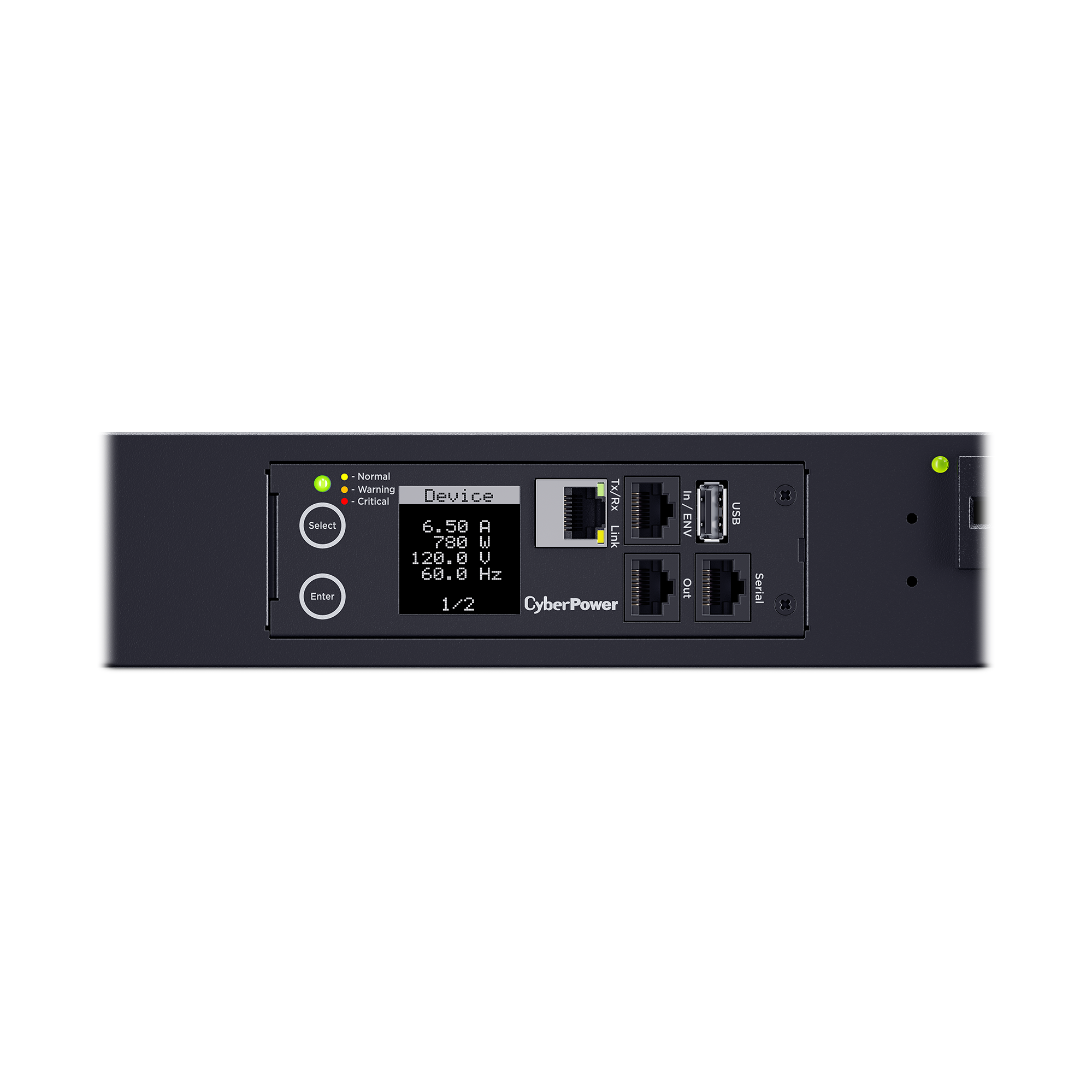 The digital display provides easy-to-read information about amperage, voltage; KW, IP address, and other vital PDU information.