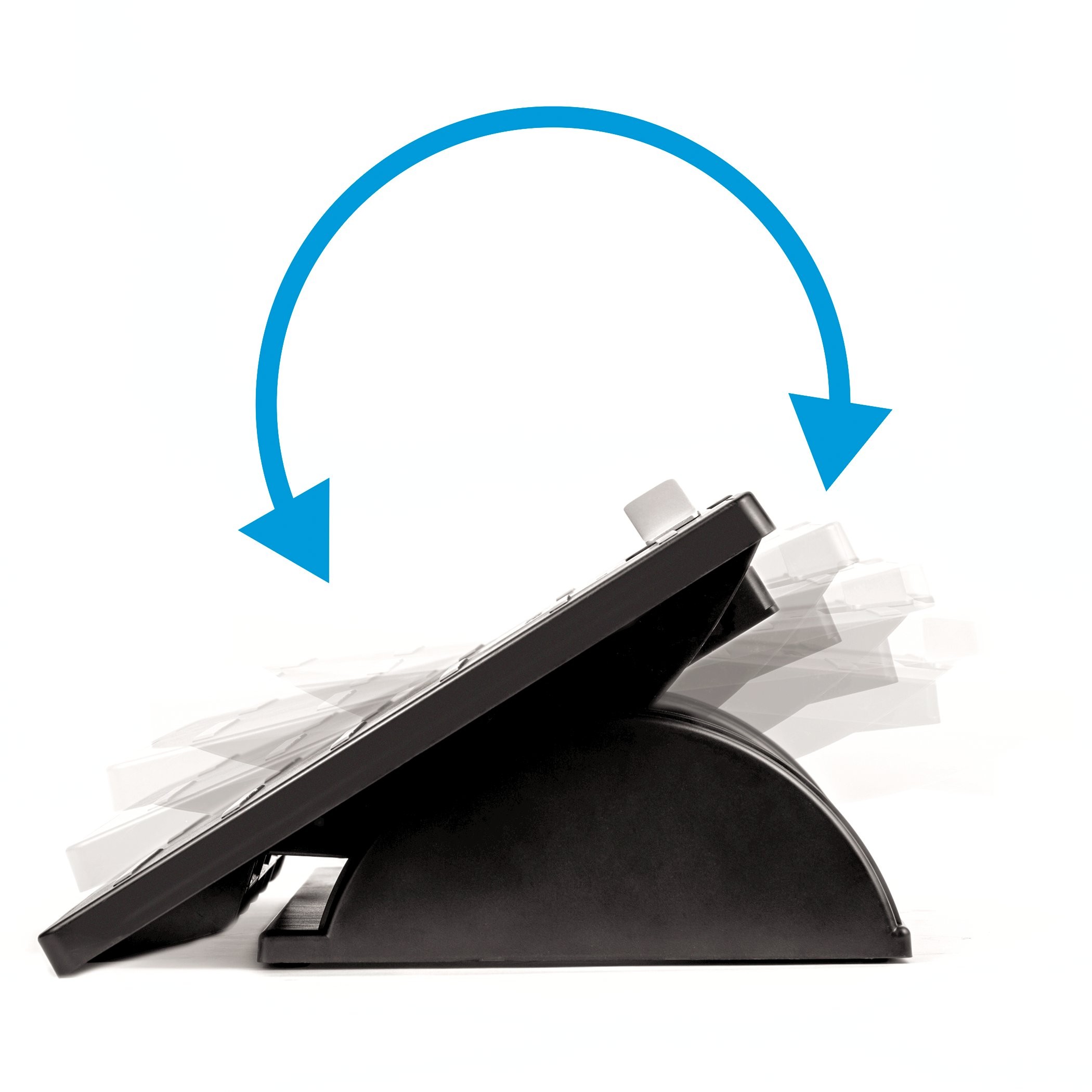 Adjustable footrest tilts 30 degrees forward or back