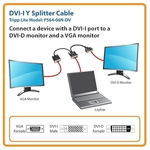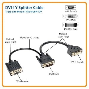 The P564-06N-DV is manufactured using top-quality materials. Double-shielding with foil and braid provides maximum EMI/RFI protection and superior signal quality. The DVI-D connector and the VGA connector have integral strain relief for durability and reliability. The P564-06N-DV supports computer video resolutions up to 1920 x 1200 and HD resolutions up to 1080p (60Hz).