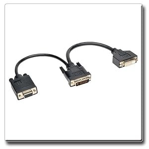 Featuring a DVI male connector for a computer and a DVI port and a VGA port for connections to monitors, the P564-06N-DV splits the video signal from your computer for display on 2 monitors simultaneously. It’s an easy, affordable solution for displaying the video signal from a notebook computer during presentations.