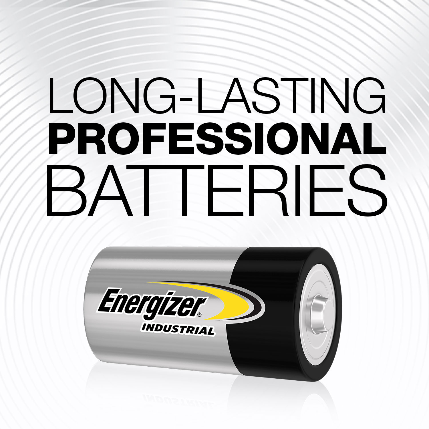 Energizer Industrial Alkaline D Battery offers an economical, high rate source of portable power for today's devices that require heavy current or continuous use. Each battery provides four to nine times more energy than similar-sized carbon zinc batteries. More economical than Carbon Zinc in terms of cost per hour of use on high current drains