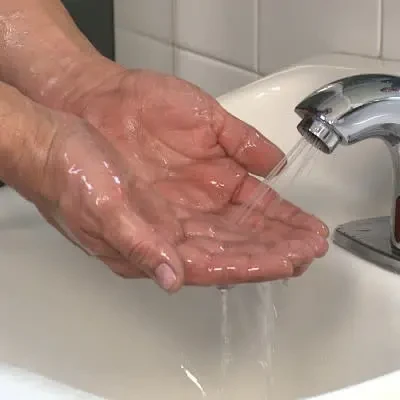 2. Rub hands together. Add a few drops of water and loosen soil.