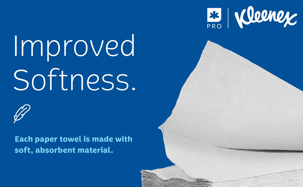 Providing top-quality Kleenex Paper Towels in your office washroom and kitchen lets your employees and guests know that you care enough to offer the very best experience. Now more gentle on the skin, these paper towels offer terrific hand drying performance, so your guests will waste less. And now with improved softness, Kleenex Multifold Paper Towels offer a superior hand drying experience for your guests and visitors.