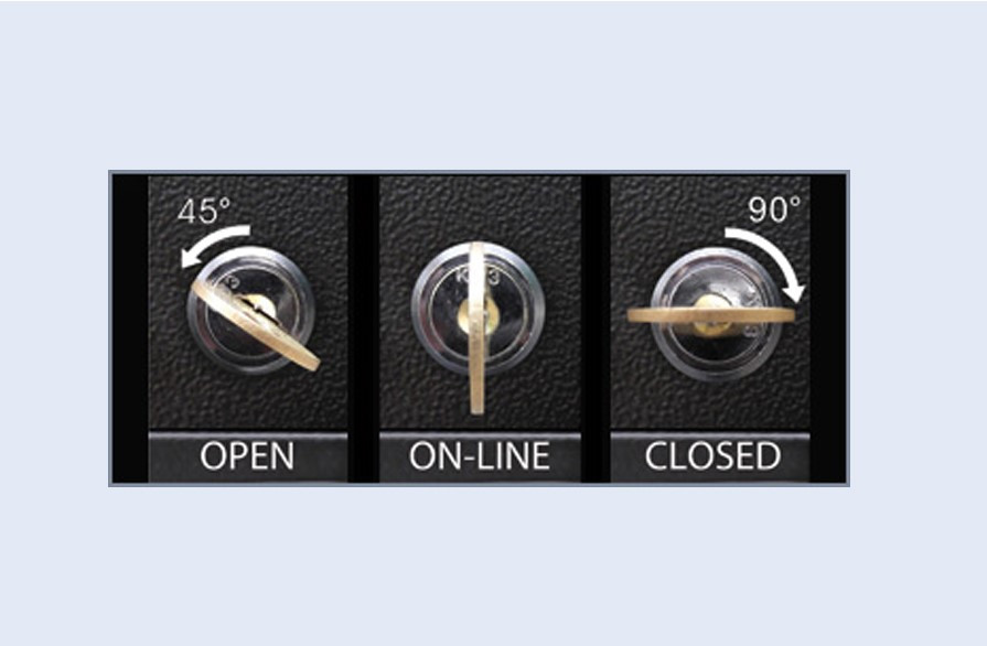 Each cash drawer comes with two coded keys. The 3-position lock latch features three functions: Lock the drawer, Unlock the drawer, and Online (ability to open electronically using a POS terminal without the key)