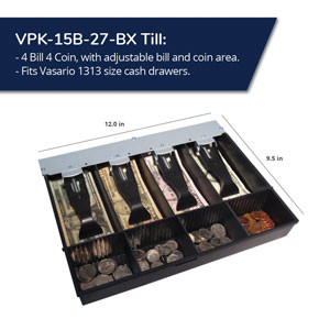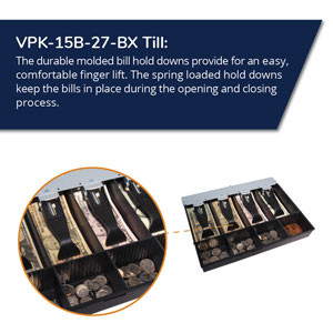 The Till Measures at 12" x 9.5" x 2.2" and is finished with spring-loaded hold-downs for keeping bills securely in place and flip up for inserting or retrieving bills.