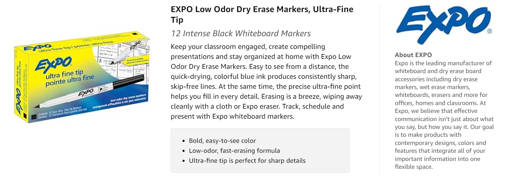 Minimizing distracting smells, the Expo low-odor formula is perfect for the classroom, office or home.