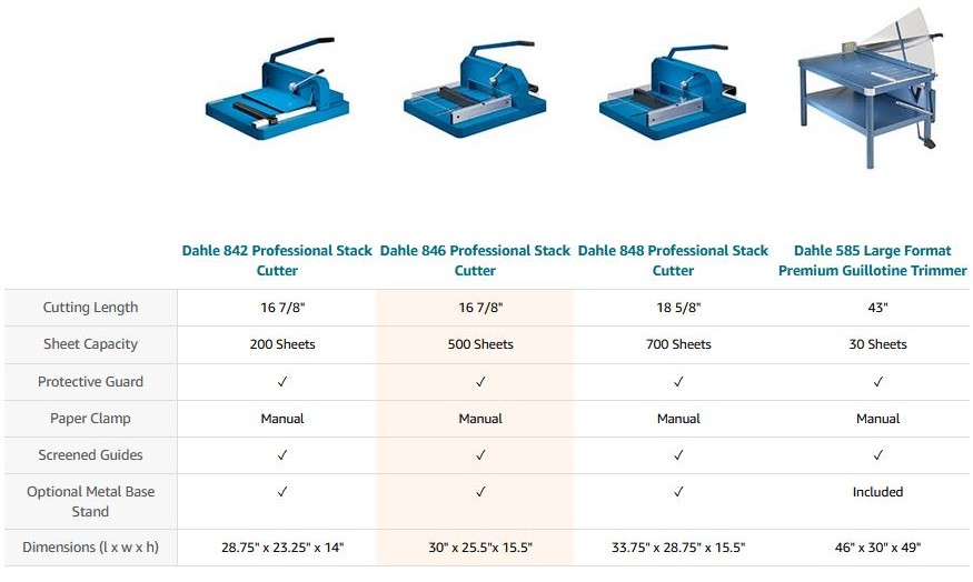 The Dahle 846 Professional Stack Cutter with a 16 7/8” cut