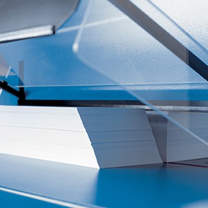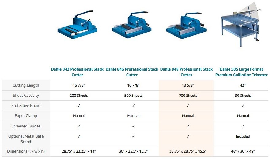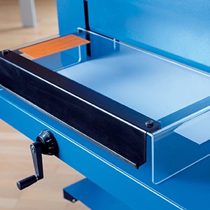 The Dahle 848 Professional Stack Cutter with 18 '' cutting length cuts up to 700 sheets of paper with minimal effort. Engineered for precision, it features a machine ground blade for smooth cutting, built-in safety features to prevent injury, and a precision ruler with a spindle-driven rear axle for precision.