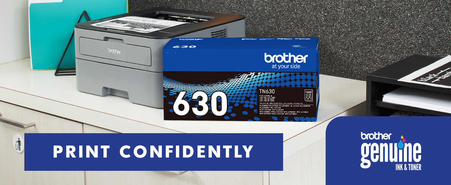 The TN630 black toner cartridge provides professional laser print quality you can consistently rely on for up to 1,200 pages(1).