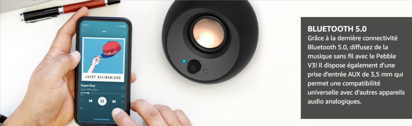 S'inspirant de la populaire Pebble Series, notre tout nouvelle Creative Pebble V3 est à présent plus forte, plus audacieuse et plus puissante que jamais !