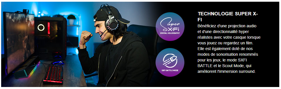 Entendez les détails dans les moments plus calmes ou les scènes d'action qui vous couperont le souffle ! Faites l'expérience d'un son spatial immersif grâce à notre conception tri-amplifiée à cinq haut-parleurs, à la technologie Super X-Fi et au surround virtuel 5.1, tous conçus pour une expérience de jeu ultime dans le confort de votre maison.