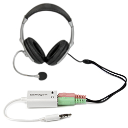 Connectez simplement la fiche du casque de votre casque dècoute au port de sortie audio comportant le symbole du casque, puis connectez la fiche du microphone au port dentrèe audio comportant le symbole du microphone. Branchez ladaptateur dans le port audio de votre ordinateur portable et cest tout.