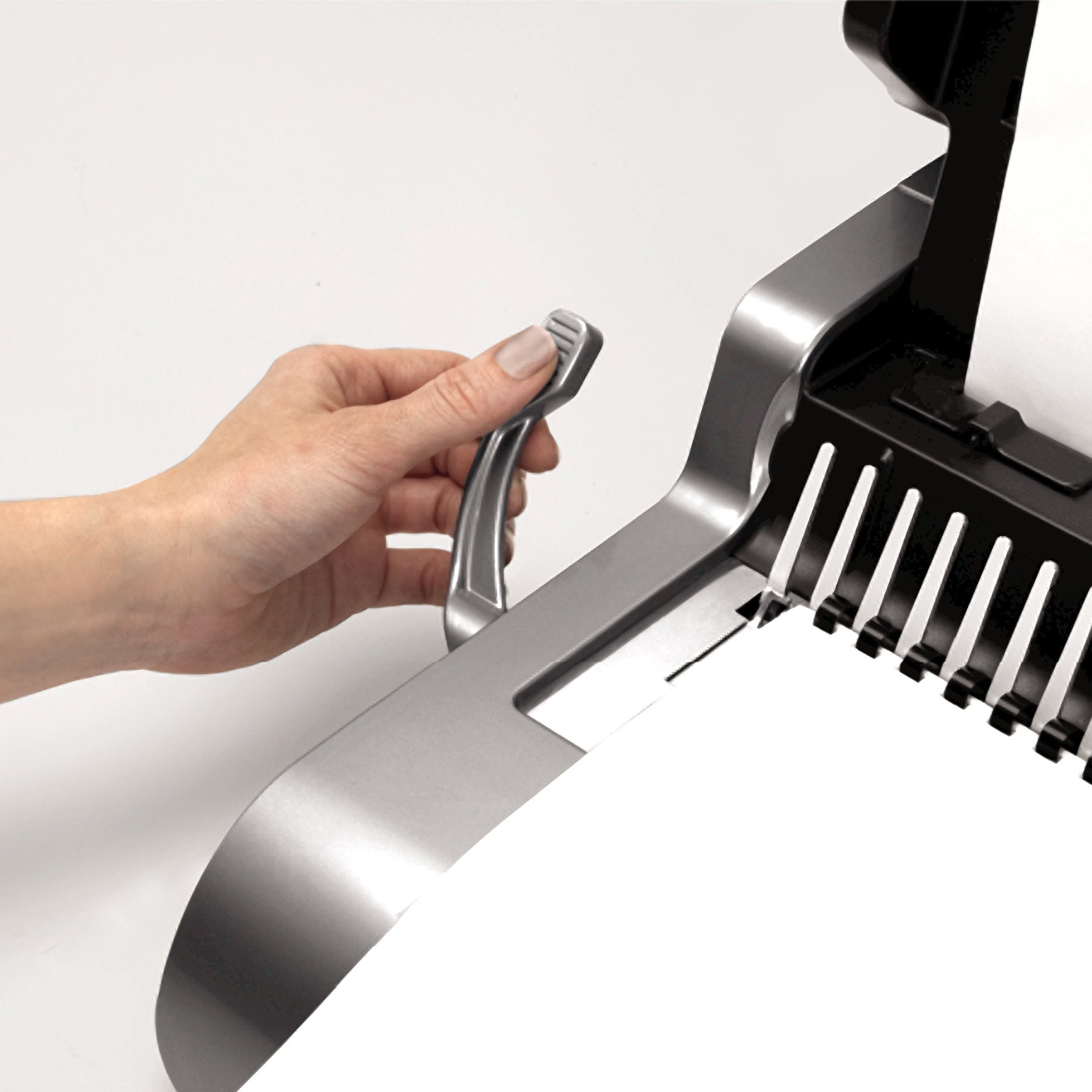 Perforation motorisée. Poussez simplement le bouton pour perforer!