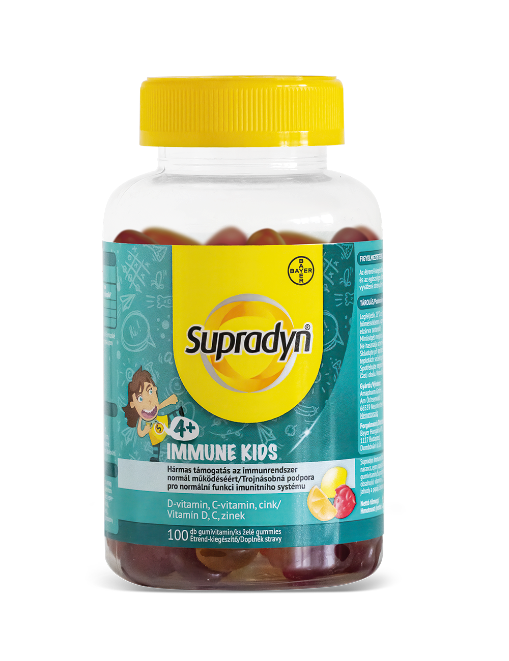 A Supradyn Kids Omega-3, a Supradyn Immune Kids gumivitamin és a Supradyn Kids Complex multivitamin zselé cukorbevonattal étrend-kiegészítő készítmények. Az étrend-kiegészítők nem helyettesítik a kiegyensúlyozott, vegyes étrendet és az egészséges életmódot.