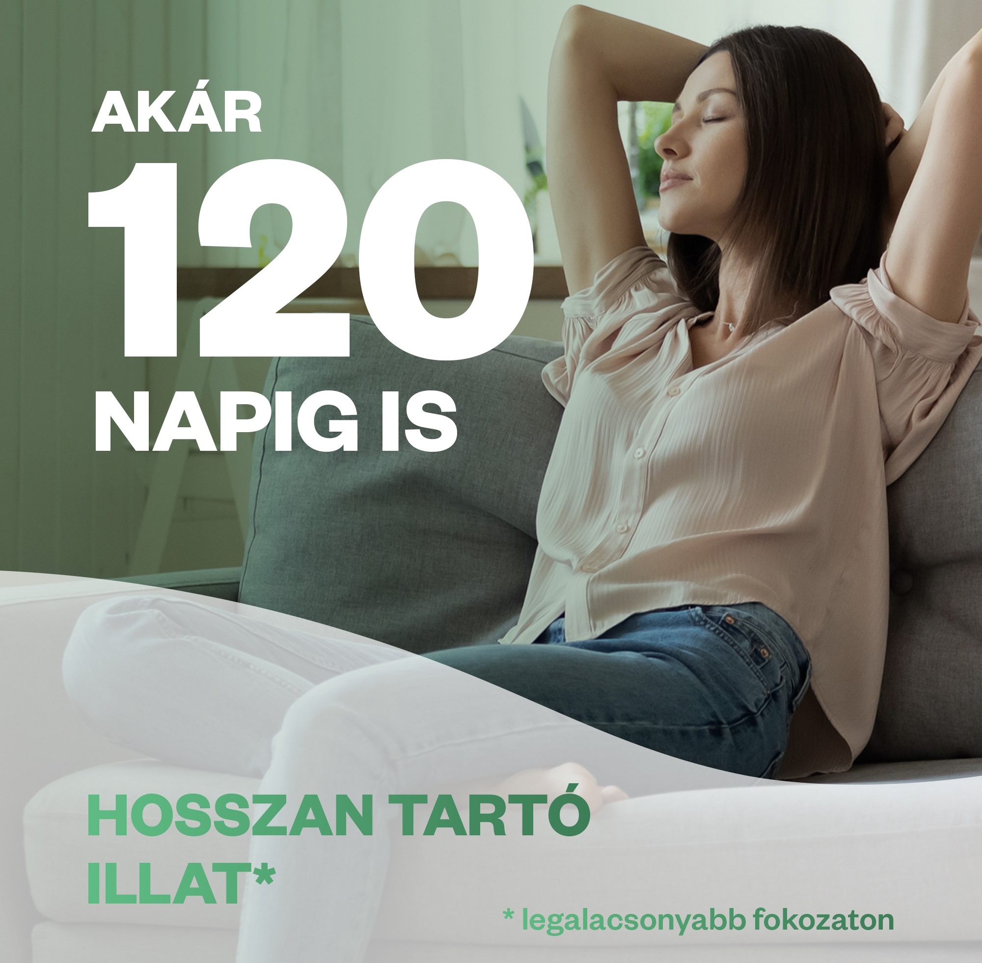 *a legalacsonyabb illatintenzitási szint mellett, napi 12 óra használat esetén.