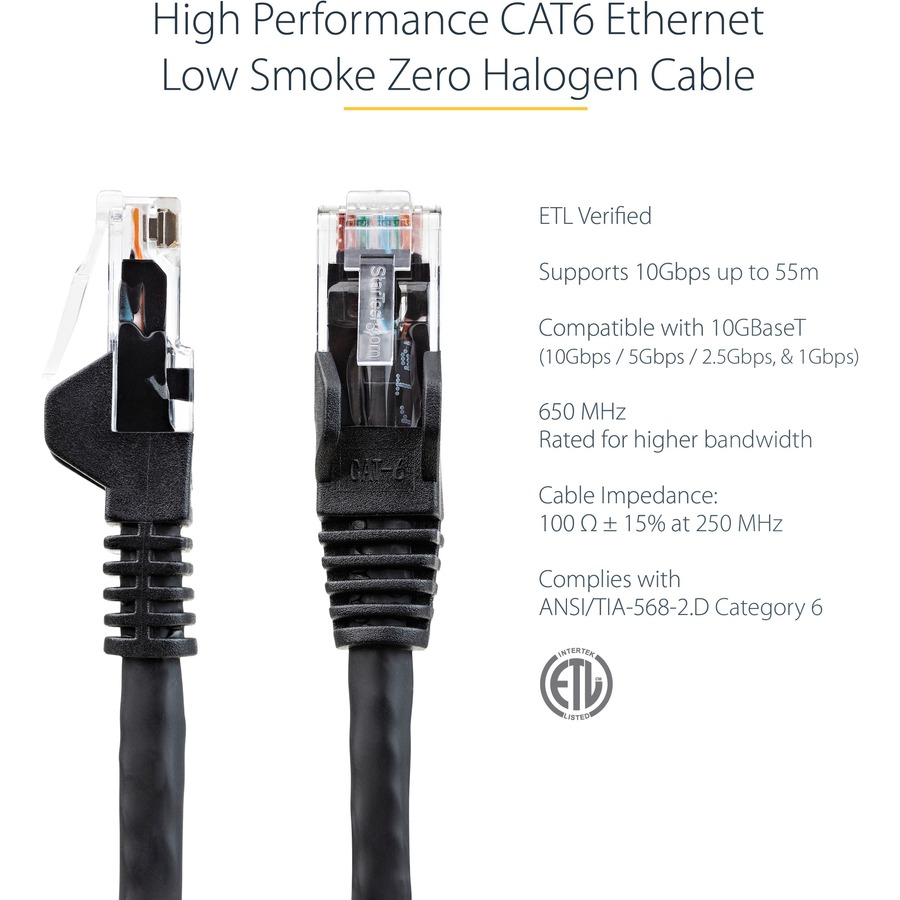 StarTech.com 10m CAT6 Ethernet Cable, LSZH (Low Smoke Zero Halogen), 10 GbE Snagless 100W PoE UTP RJ45 Black CAT 6 Network Patch Cord, ETL