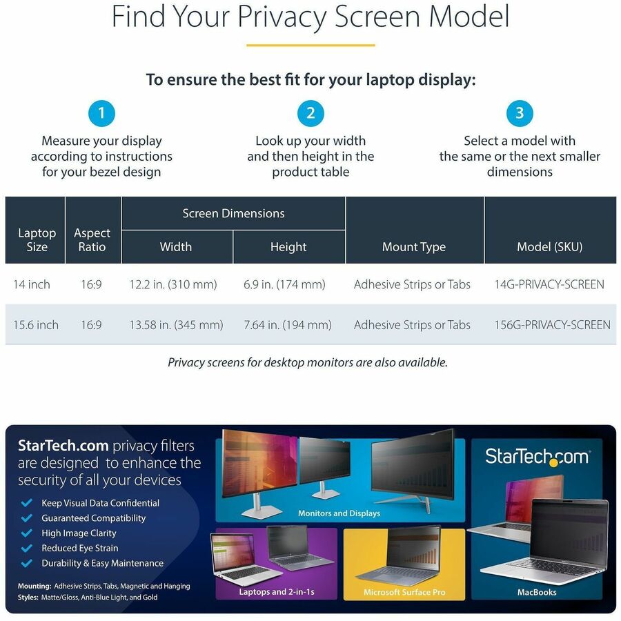 StarTech.com Plastic Anti-glare Privacy Screen Filter - Gold, Black - 1