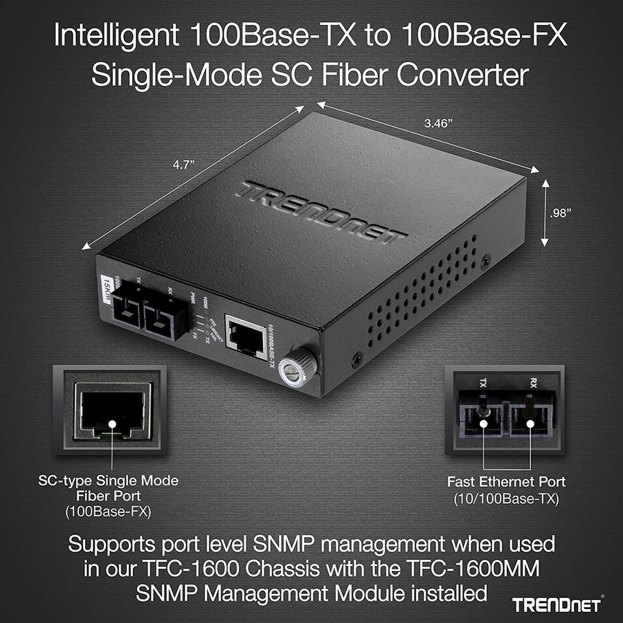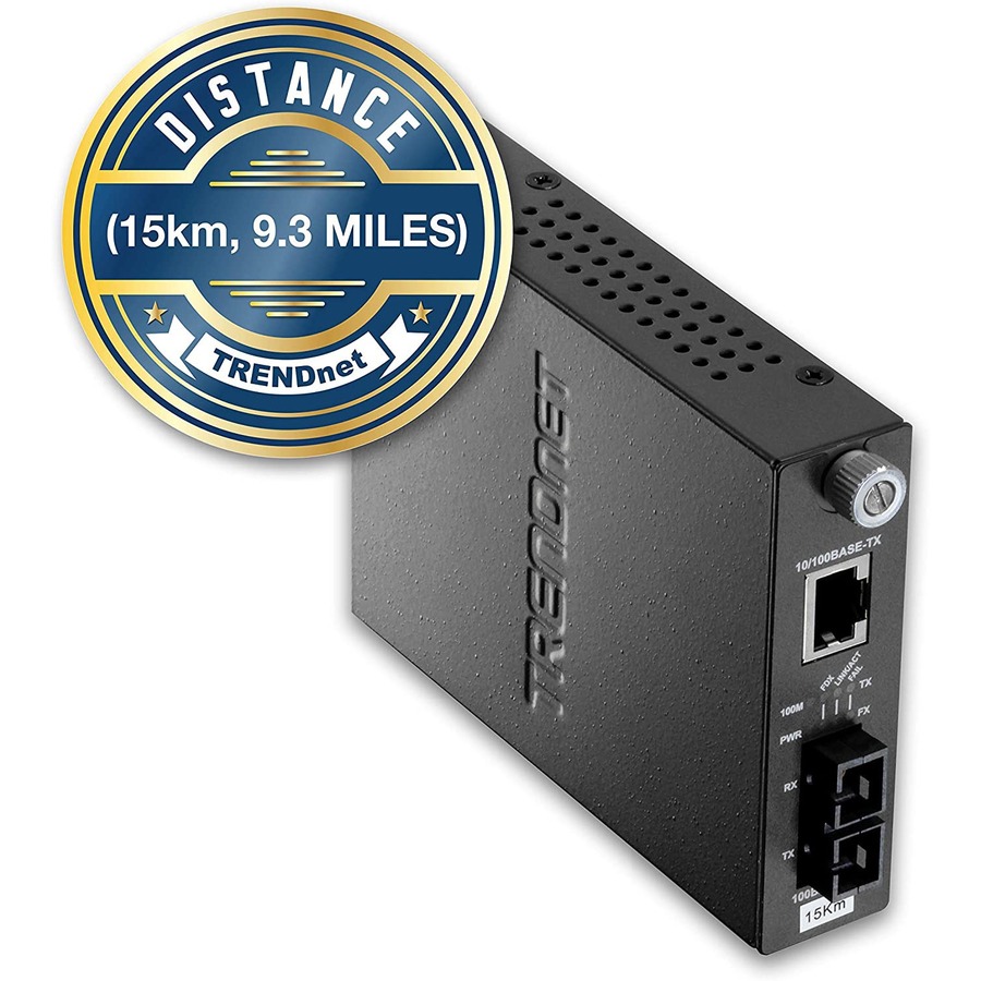 TRENDnet Intelligent 10/100Base-TX to 100Base-FX Single Mode SC Fiber Media Converter (15Km/9.3 Miles) Auto-Negotiation; Full-Duplex Mode; Fiber to Ethernet Converter; Lifetime Protection; TFC-110S15i