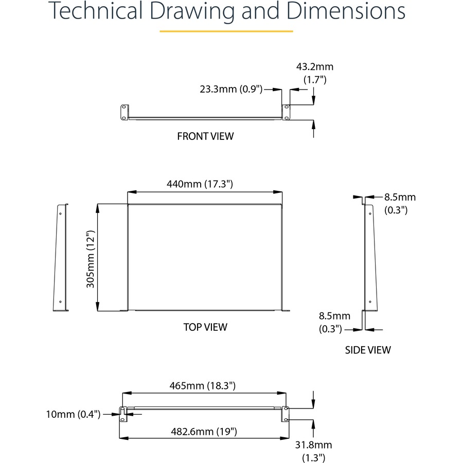StarTech.com 1U Server Rack Cabinet Shelf - Fixed 12" Deep Cantilever Rackmount Tray for 19" Data/AV/Network Enclosure w/cage nuts, screws