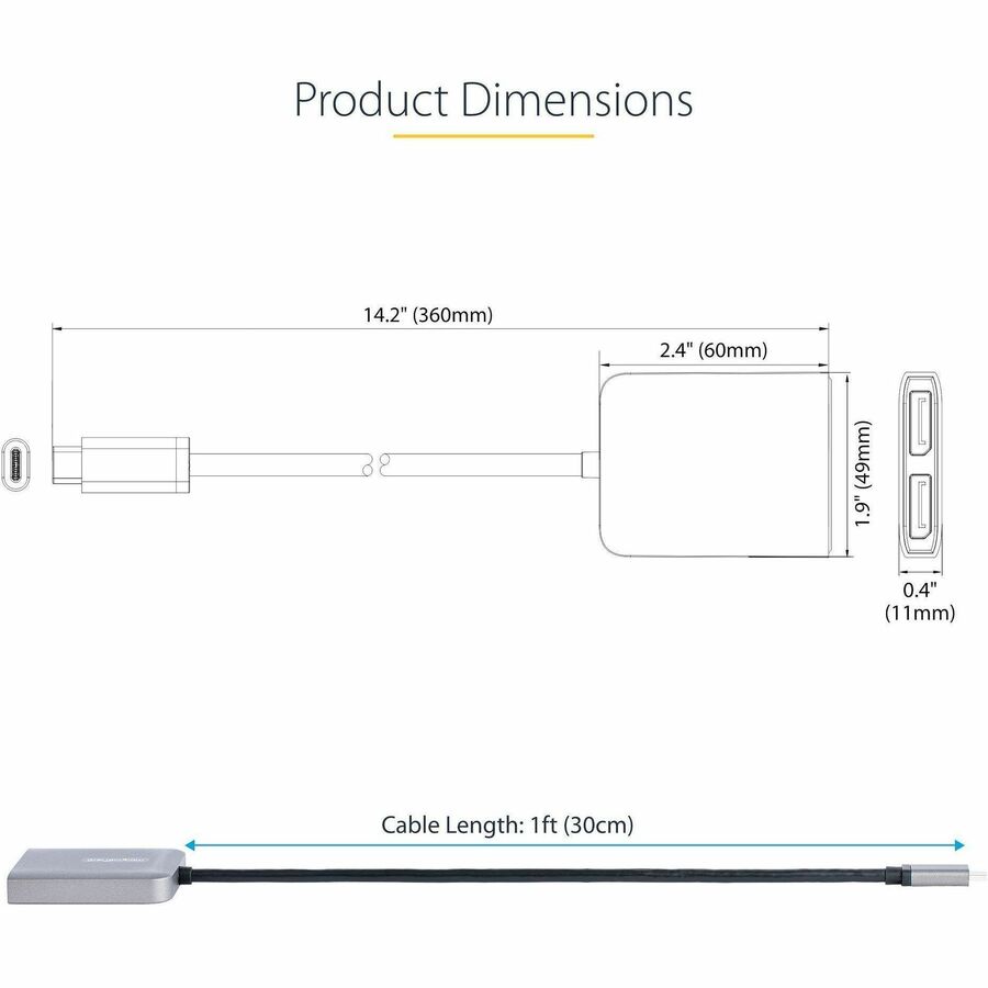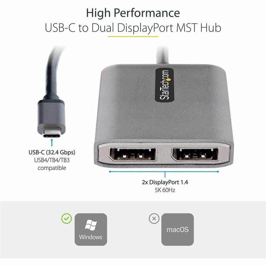 StarTech.com USB-C to Dual DisplayPort 1.4 Adapter, USB Type-C Multi-Monitor MST Hub, Dual 5K 60Hz DP Display Extender / Splitter, Windows