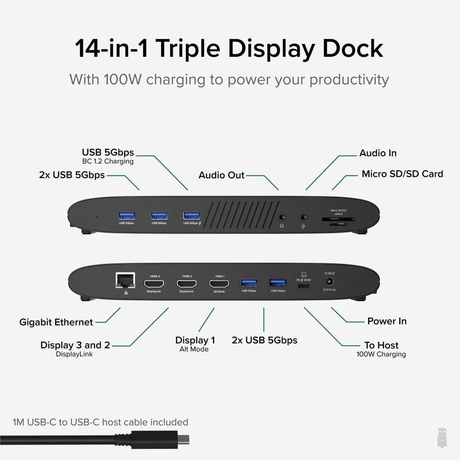 Plugable 14-in-1 USB-C Triple Monitor Laptop Docking Station with 100W Charging - Replaced by UD-3900PDZ