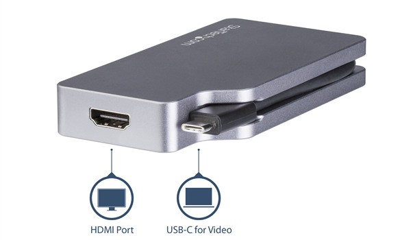 Avoid the hassle of carrying different adapters for different displays with this 4-in-1 USB-C video adapter’. With VGA, DVI, HDMI and mDP output, you can connect your laptop to virtually any display. It’s a convenient plug-and-play solution for travel or Bring Your Own Device (BYOD) applications, wherever you go.
