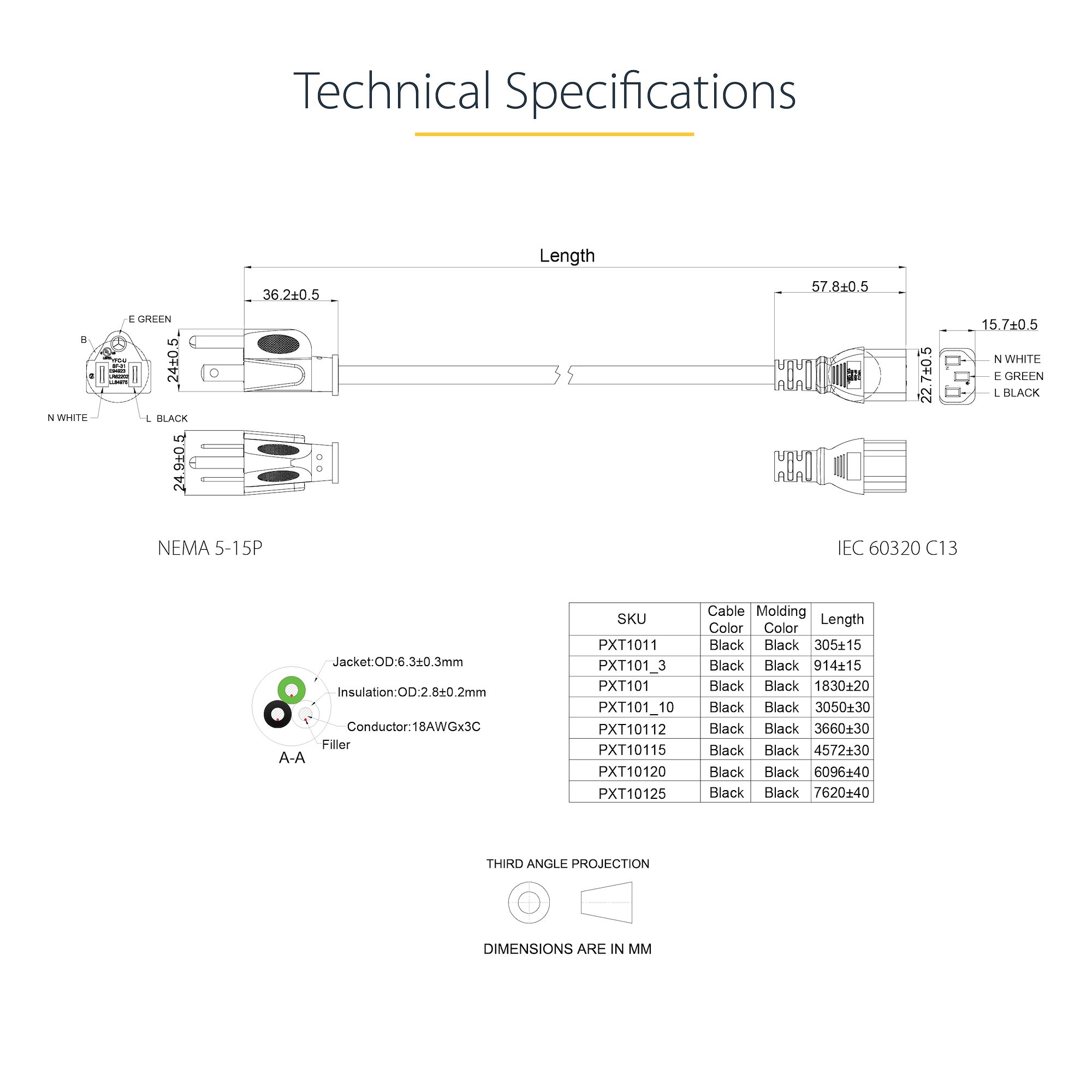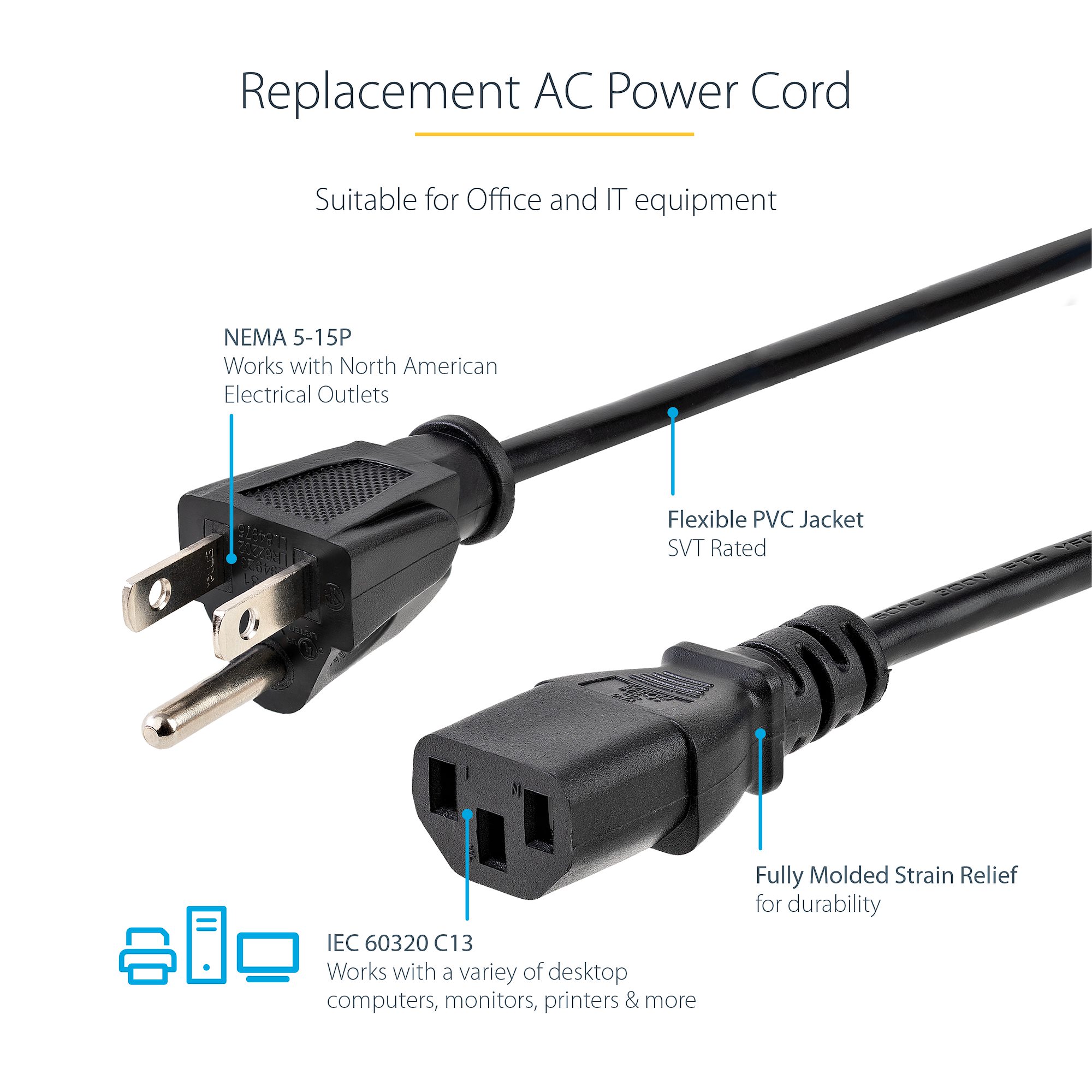 The PXT10125 25-foot Computer Power Cord is a durable, universal power cord that can be used as a cost effective replacement for your existing PC power cord, and offers 25ft of connection distance between a computer or peripheral device and an available power outlet - an ideal solution for connecting your monitor, PC or laser printer to a grounded power outlet.