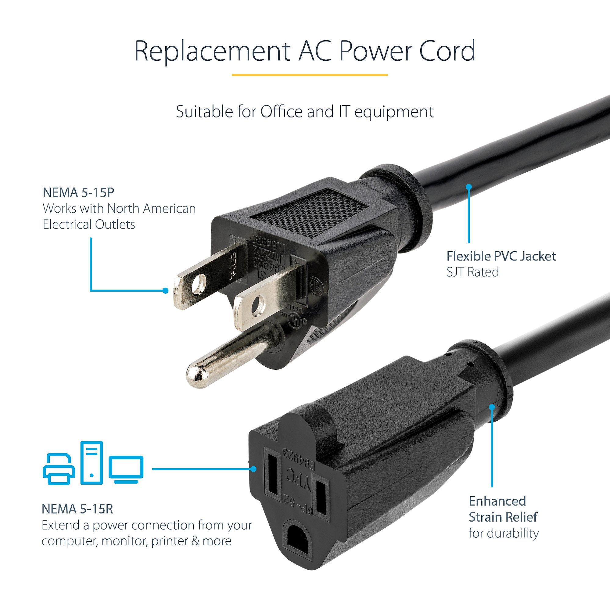 This 10ft power extension cable extends your existing power connection by 10ft, enabling you to use the PC or another powered device at a greater distance from the power source/outlet.