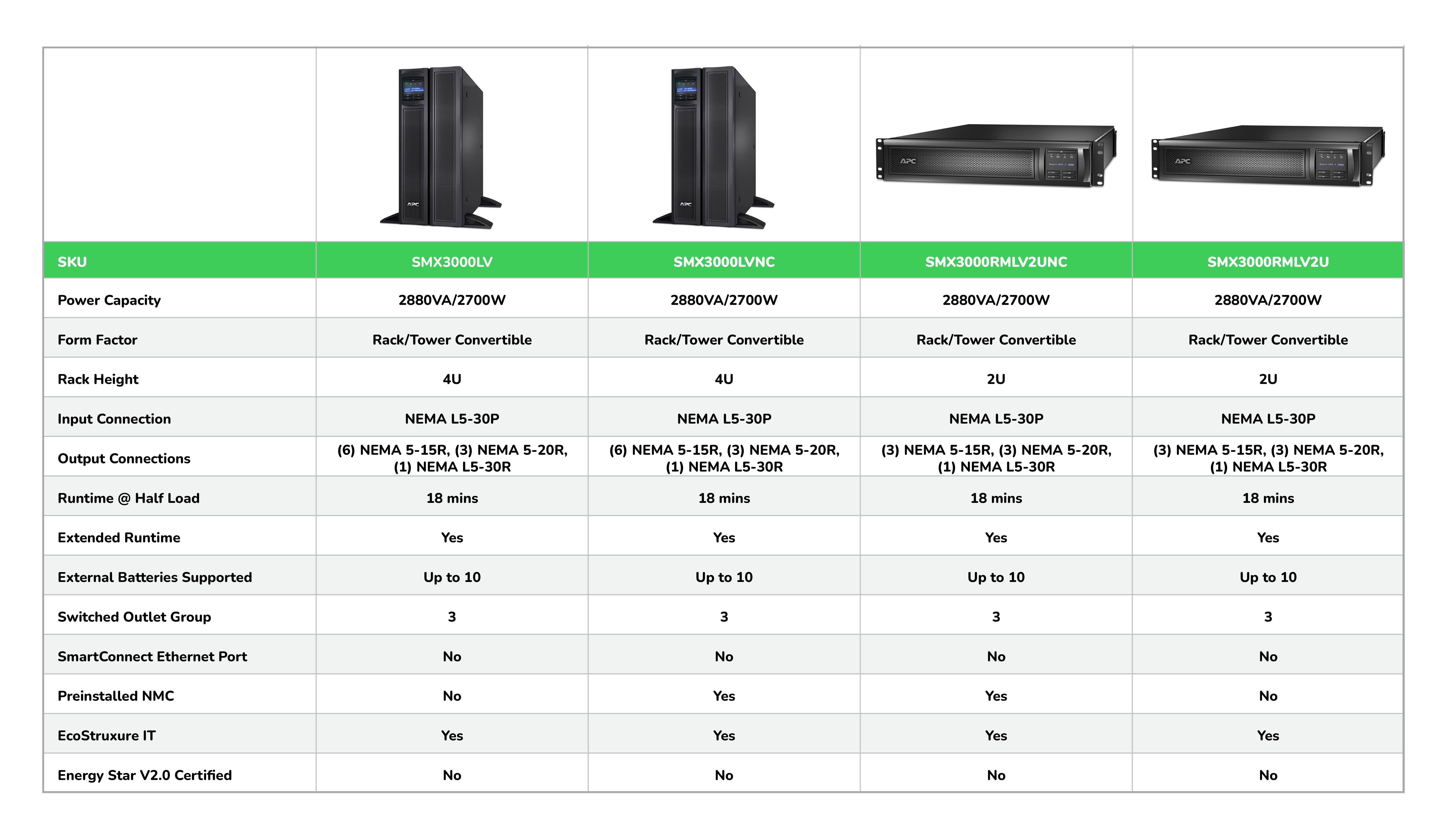 Options for monitoring and managing your UPS include EcoStruxure IT, Network Management Card and PowerChute Software.