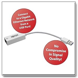 With the U336-000-GBW, connecting your computer to a Gigabit network couldn’t be simpler. Weighing less than an ounce, it’s small and lightweight enough to take with you wherever you go. And there’s no need to install an internal Ethernet card in your computer. Just plug it into a USB port and connect to a network using Cat5e/6 cable. One end has a USB 3.0 A male connector and the other has an RJ45 female connector. Two LEDs let you know when you’re connected to a network and when data is being transferred.