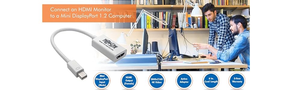 This adapter helps you save money by making your current HDMI monitor compatible with a DisplayPort-equipped computer. High-quality connectors provide maximum conductivity to ensure a clean, consistent video signal.