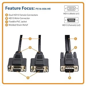 The P516-006-HR is manufactured using top-quality materials. Premium double shielding provides maximum EMI/RFI protection to ensure a consistent, clean video signal. The HD15 connectors have integral strain-relief for durability and long life.