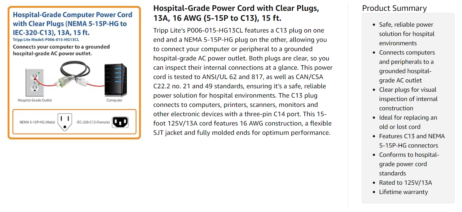 The P006-015-HG13CL comes with a lifetime warranty. It’s manufactured in compliance with strict RoHS specifications, reflecting Tripp Lite’s commitment to environmental responsibility.