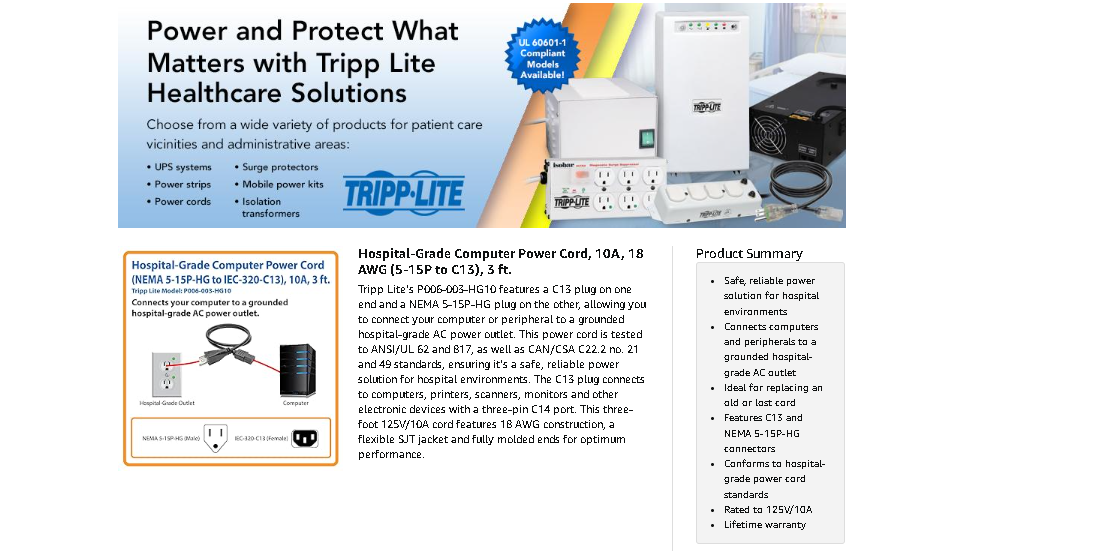 The P006-003-HG10 comes with a lifetime warranty. It’s manufactured in compliance with strict RoHS specifications, reflecting Tripp Lite’s commitment to environmental responsibility.