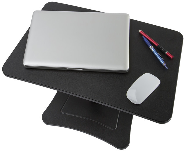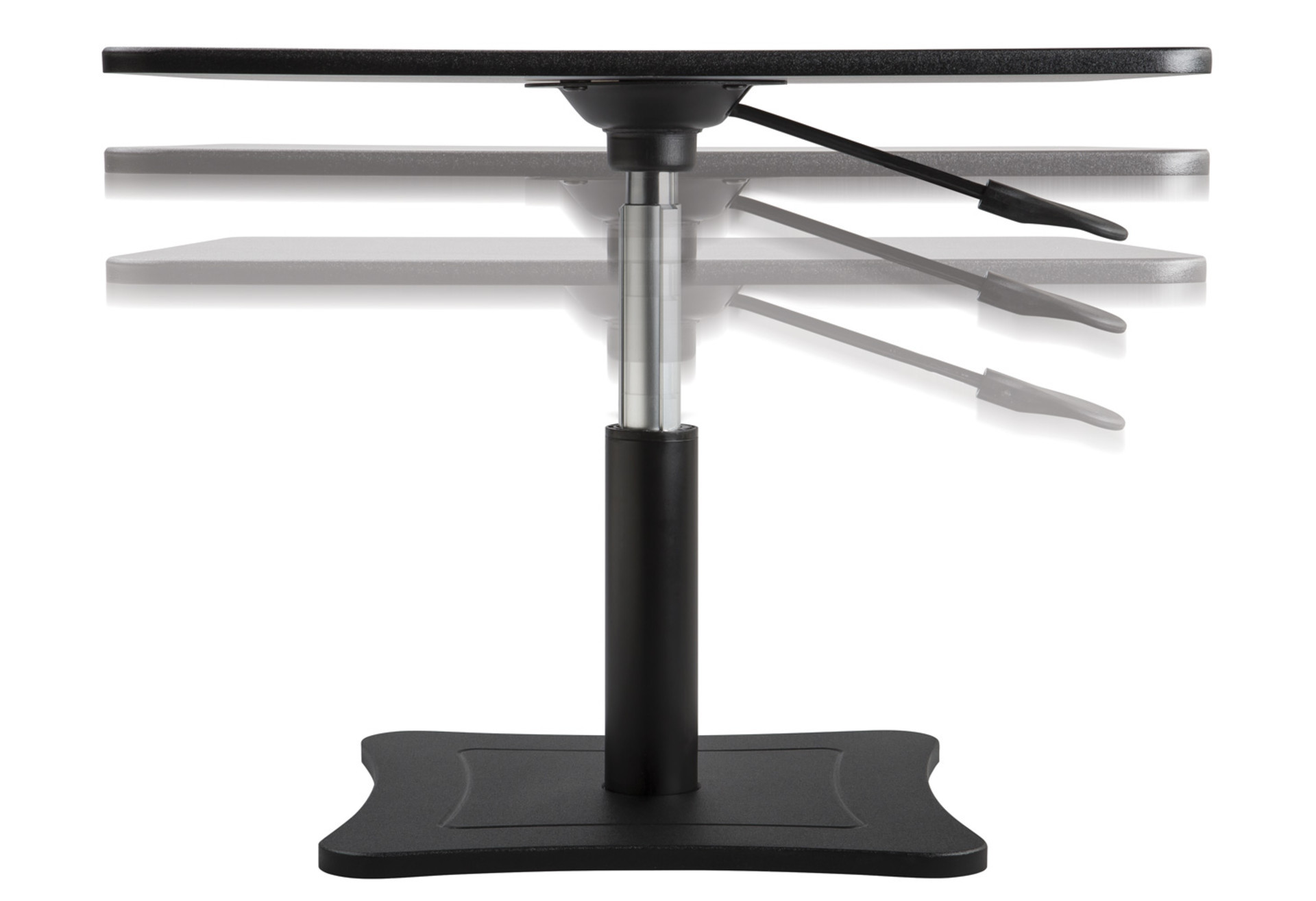 The scratch resistant PVC coated work surface is 21in. wide by 13in. deep, allowing for the space to work comfortably and accommodate a mouse, a cup of coffee or a 4x6 notepad. With a lever directly under the work surface, adjusting the height of the DC230 is simple and smooth. The heavy-duty steel piston allows for height adjustments from 12” to 15” above the desk or tabletop. Note: Does not lower to a sitting position. Create a standing work station virtually anywhere that meets the demand of your busy day. At 8.75lbs, it’s portable and easy to move.