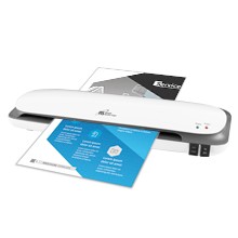One-touch controls allow for easy operation. This machine warms up in 3-5 minutes and a ready indicator light will notify the user when the laminator is ready for use. A manual reverse lever at the back of the unit will assist users if a jam or misfeed occurs.